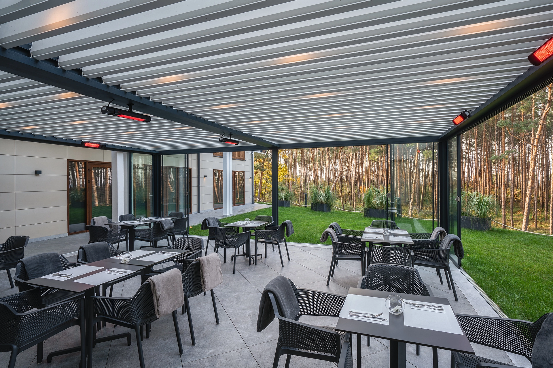 Az opcionálisan rendelhető kiegészítők segítségével a csúcskategóriás terasztetők is felszerelhetők mindazzal, ami a vendéglátó-éttermi területen szó szerint speciális megvilágításba helyezi a külső tereket, pl: beépített LED fénycsíkok vagy LED spotlámpák, függőleges oldalfalak (textil vagy üveg), infravörös fűtés, valamint esőérzékelő, amelyek automatikusan bezárják a pergolát, amikor elkezd esni. Valamennyi tartozékmodul és a teljes lamellatető központilag vezérelhető az univerzális távirányítóval. Nagyon egyszerű és jól átgondolt rendszer, mely tökéletesen alkalmazható a professzionális HoReCa területen.