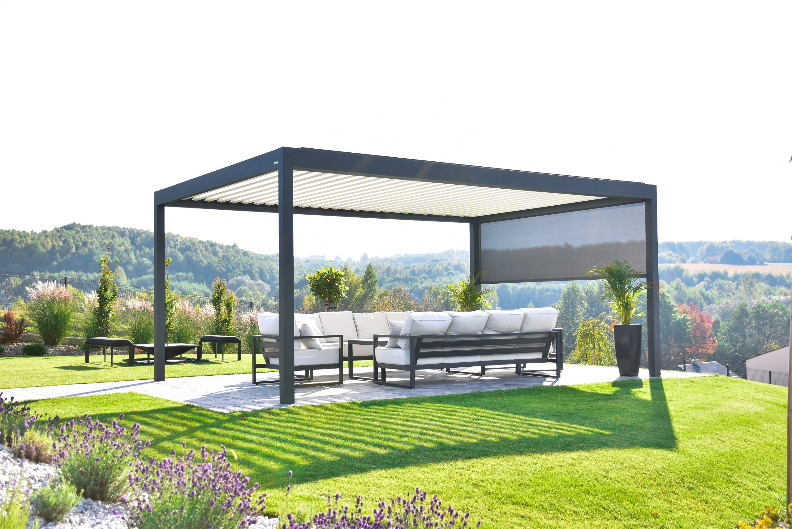 Ha túl erősen süt a nap, a lamellák optimálisan használhatók napvédelemként, árnyékolóként. Ha viszont hirtelen elkezd esni az eső, akkor a lamellák teljesen bezáródnak és esőálló védőtetőként szolgálnak. Hidegben, szélben, zord időjárásban az oldalfedések is védi vendégeit.